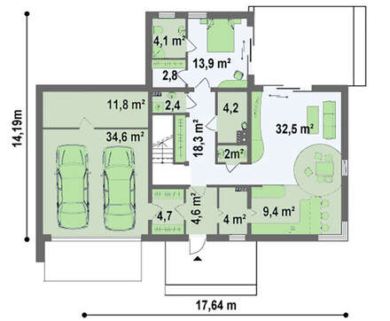 Проект дома в стиле модерн с гаражом для двух авто