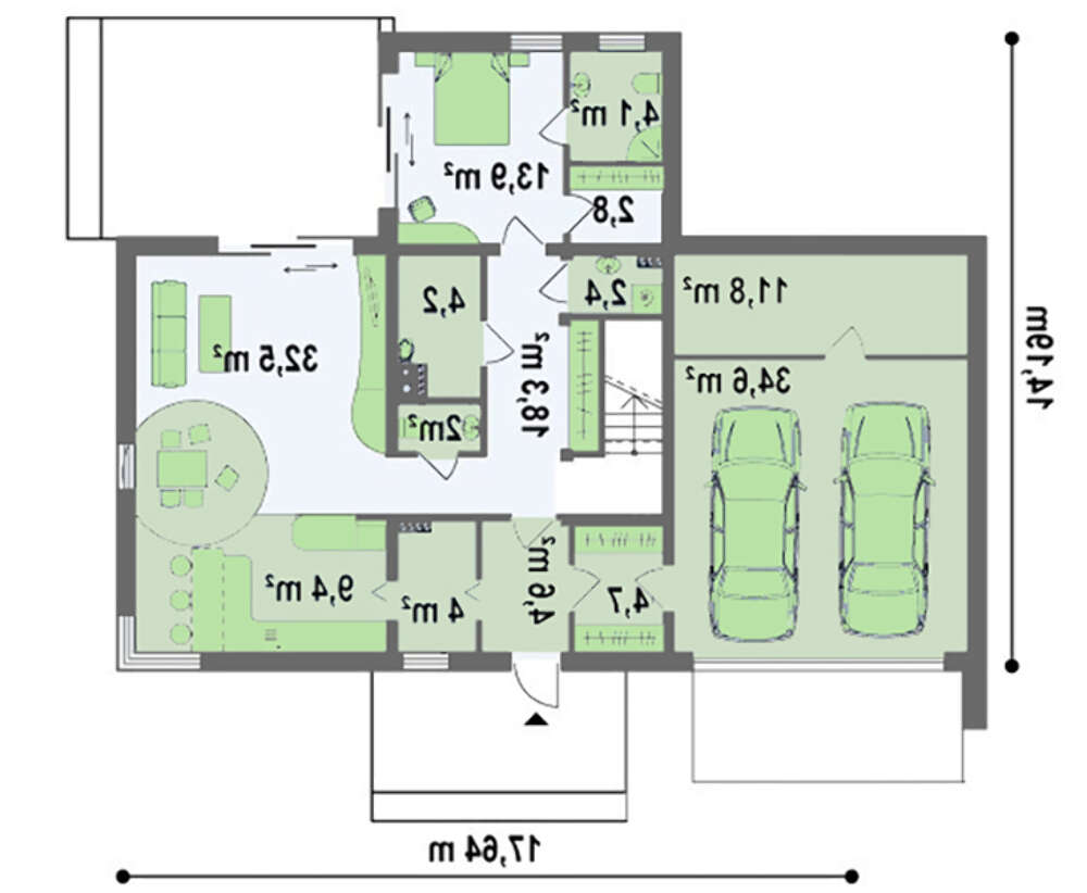 Проект дома в стиле модерн с гаражом для двух авто