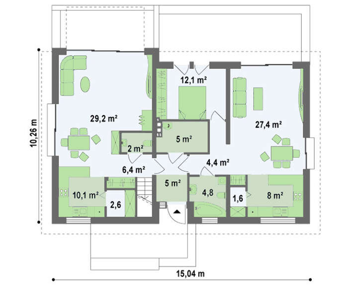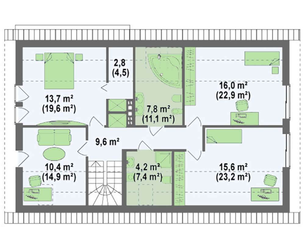 Проект содержит три раздела – АрхитектурныйКонструктивный и Инженерный: водоснабжение, отопление, вентиляция, канализация, электроснабжение (приобретается за дополнительную плату) + Пояснительная записка.