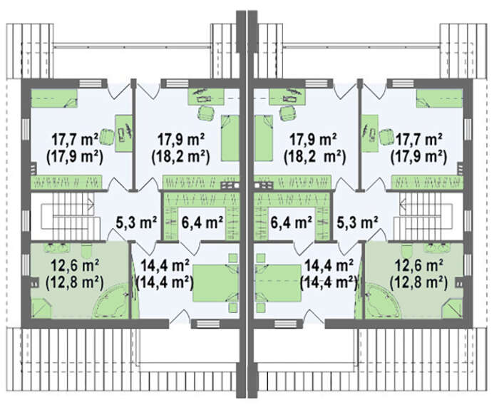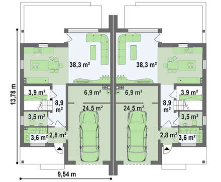 • 4M550 Проект коттеджа на две семьи с гаражом