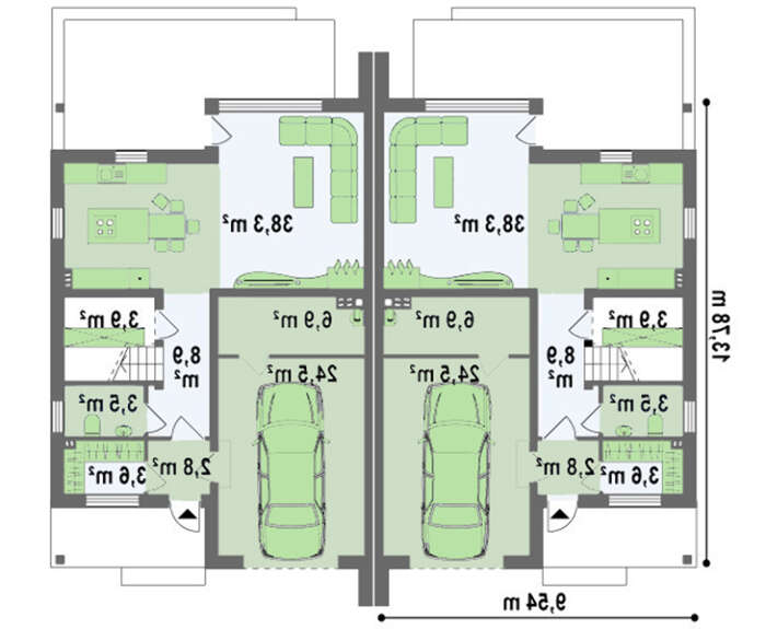 • 4M550 Проект коттеджа на две семьи с гаражом