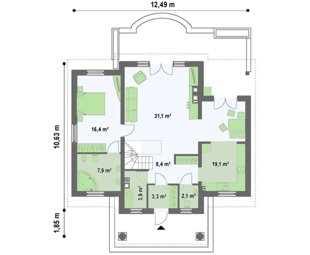 • 4M520 Проект дома с мансардой площадью 185 m²