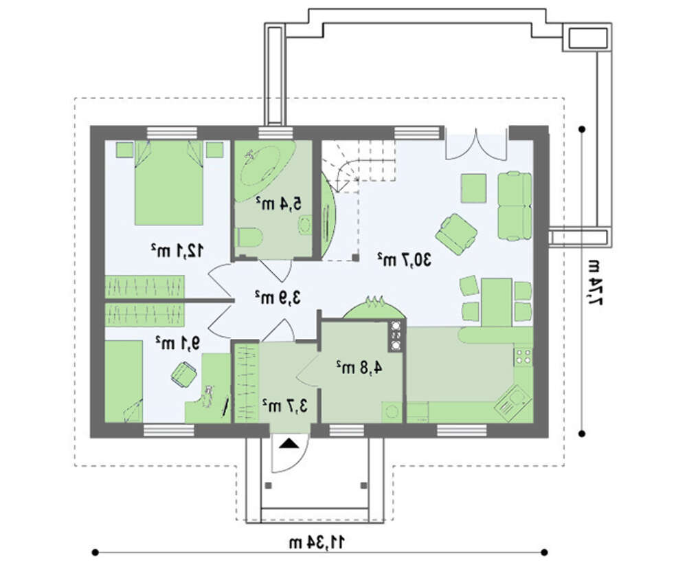 • 4M032 Проект одноэтажного недорогого дома площадью 70 кв.м.