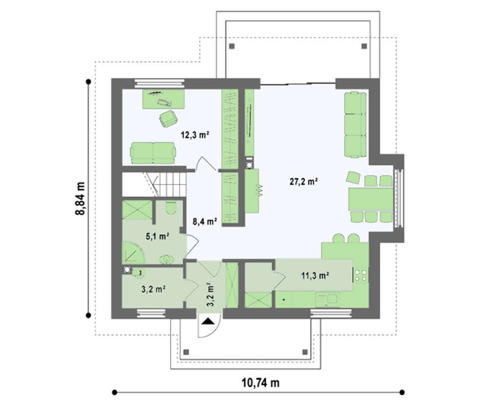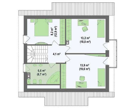 • 4M084 Проект мансардного дома площадью 134 кв.м. с эркером