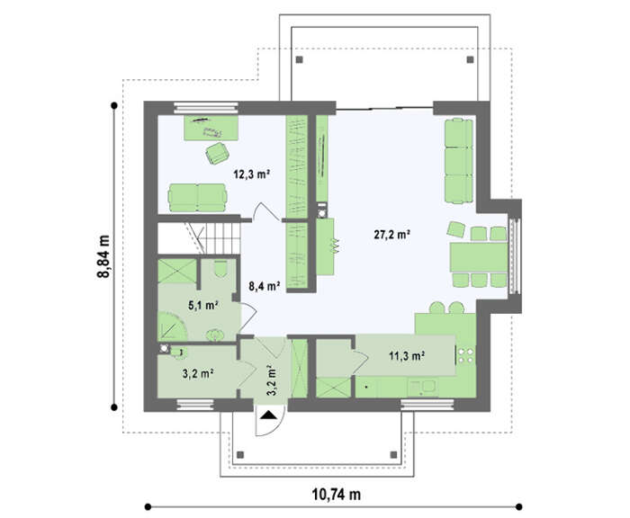 Проект содержит три раздела – АрхитектурныйКонструктивный и Инженерный: водоснабжение, отопление, вентиляция, канализация, электроснабжение (приобретается за дополнительную плату) + Пояснительная записка.