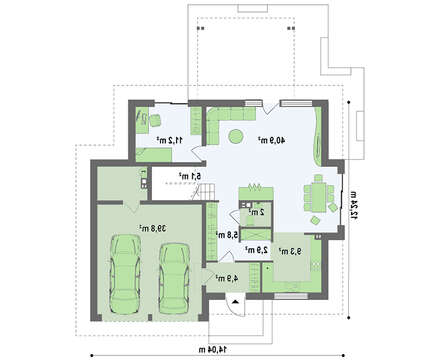 Проект дома с фасадными окнами и гаражом для двух автомобилей