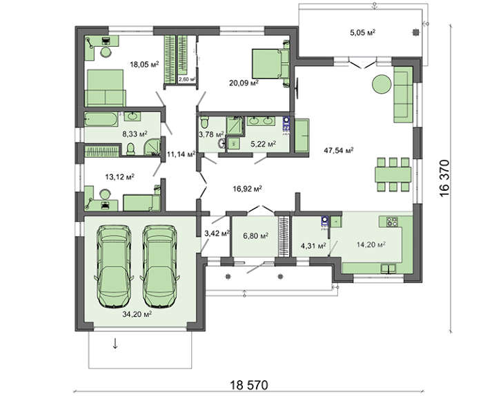 Проект одноэтажного дома площадью 215 кв.м. 4M288