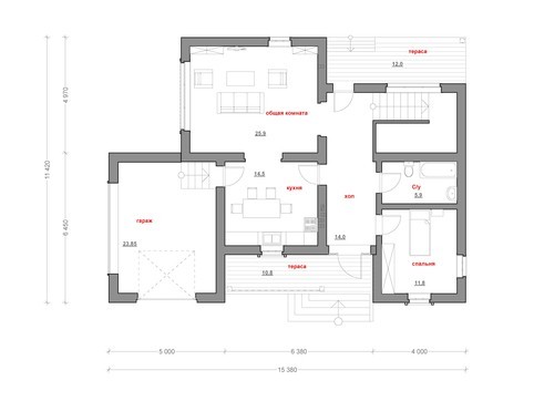 Проект дома с гаражом и дополнительной комнатой на первом этаже 4M806