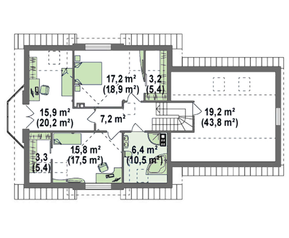 Проект содержит три раздела – АрхитектурныйКонструктивный и Инженерный: водоснабжение, отопление, вентиляция, канализация, электроснабжение (приобретается за дополнительную плату) + Пояснительная записка.