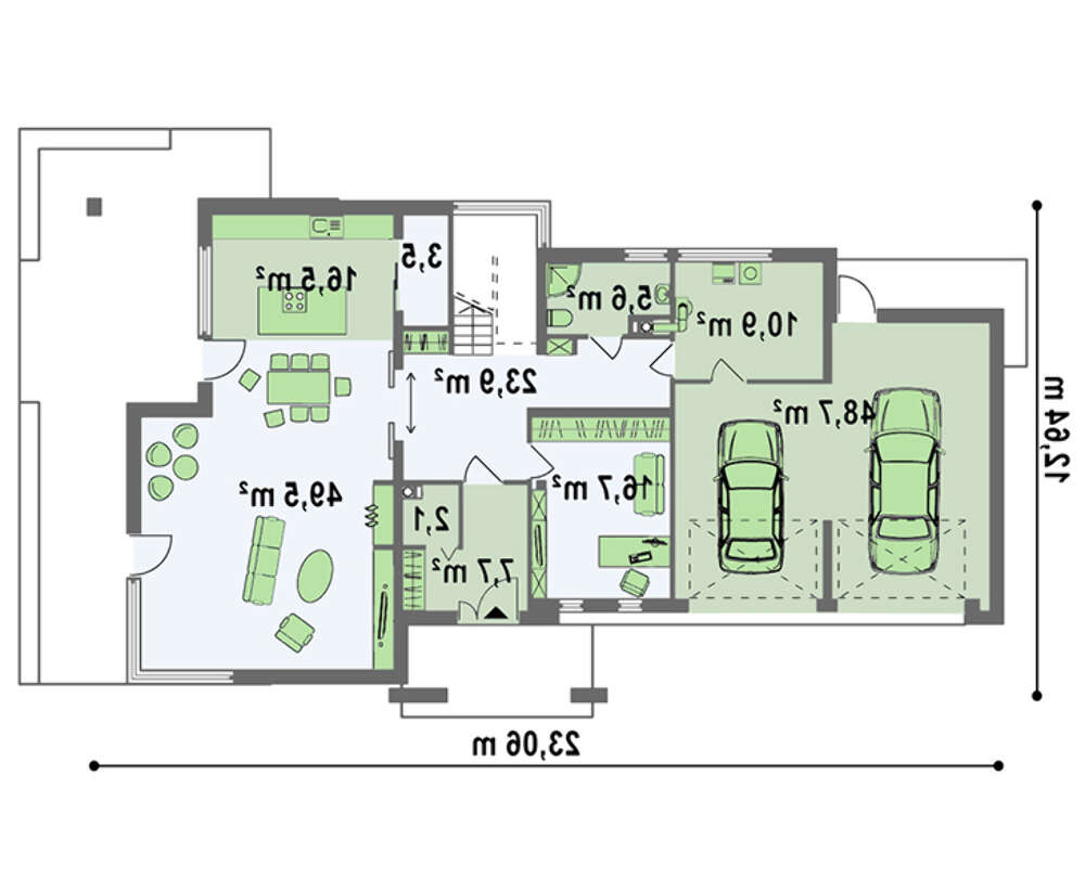 Проект коттеджа с гаражом на два автомобиля