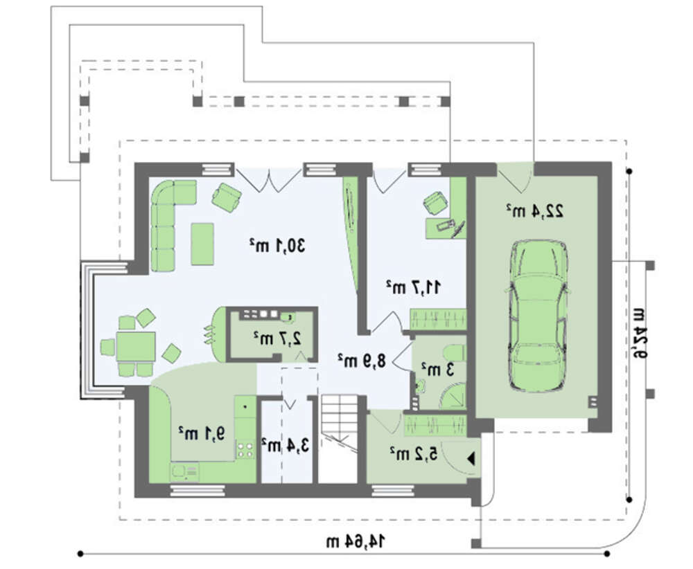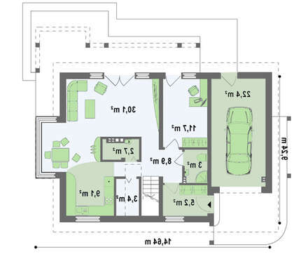 Минимальный размер участка(длина):22.64 м