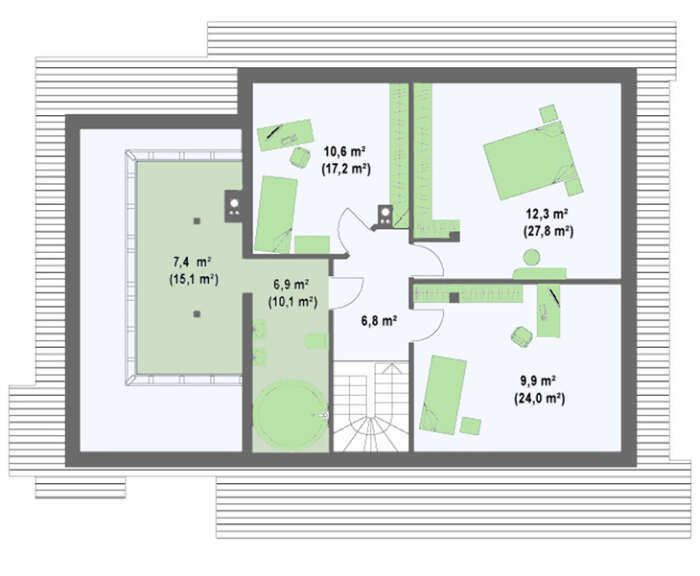 Проект содержит три раздела – АрхитектурныйКонструктивный и Инженерный: водоснабжение, отопление, вентиляция, канализация, электроснабжение (приобретается за дополнительную плату) + Пояснительная записка.