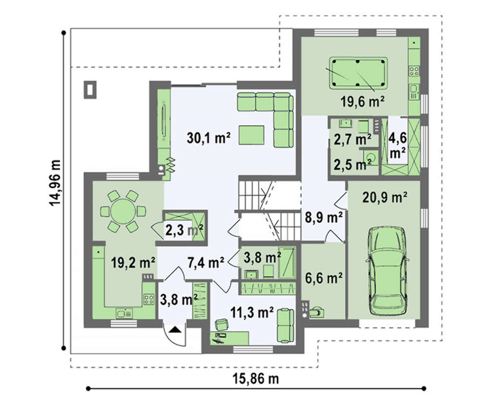 • 4M105 Проект дома с гаражом в цокольном этаже