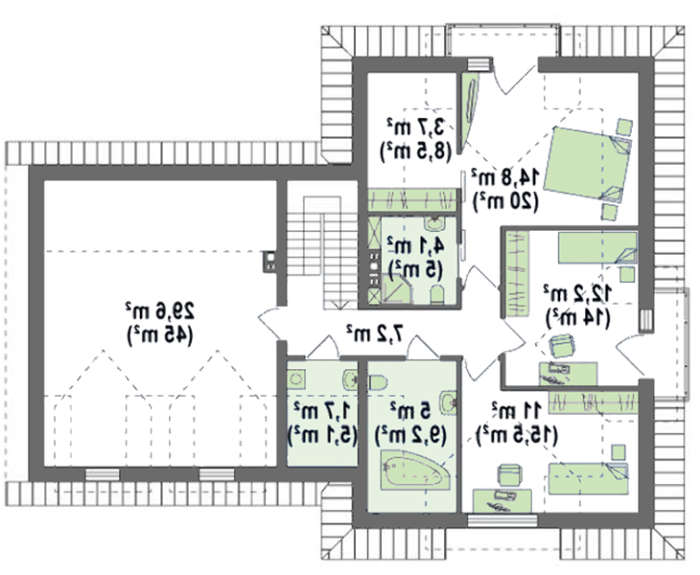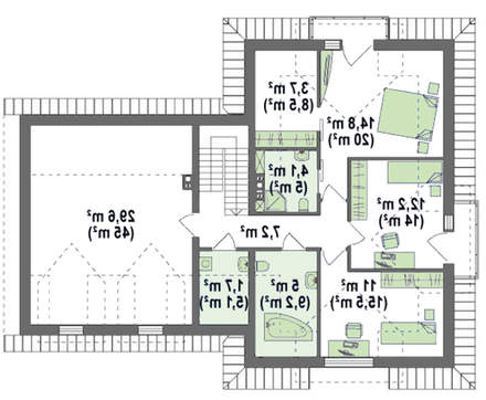 Угол наклона кровли:40° / 35 °