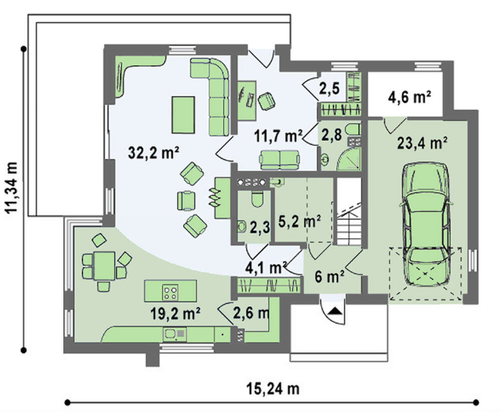 Проект коттеджа с кабинетом и гаражом