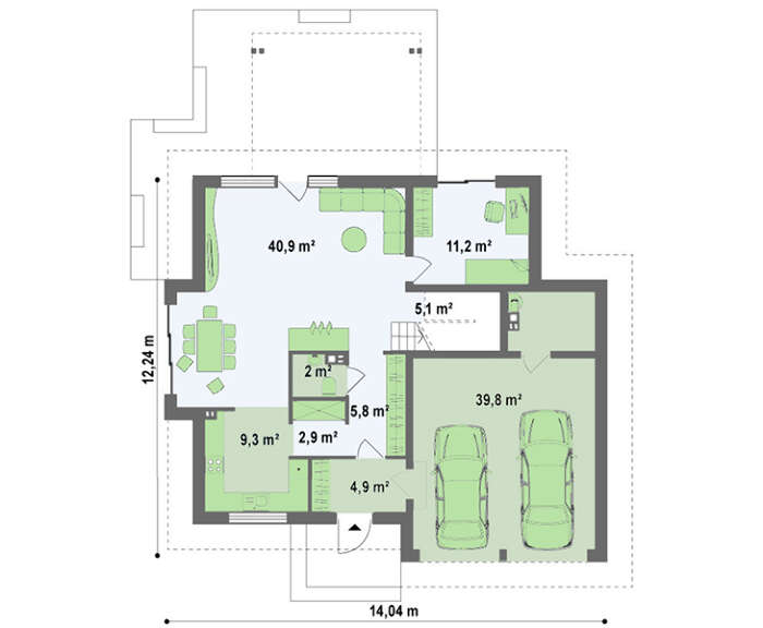Проект дома с красивыми окнами и гаражом для 2 машин