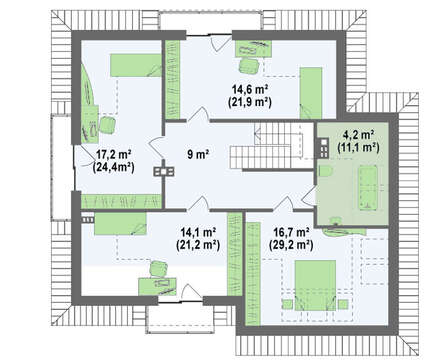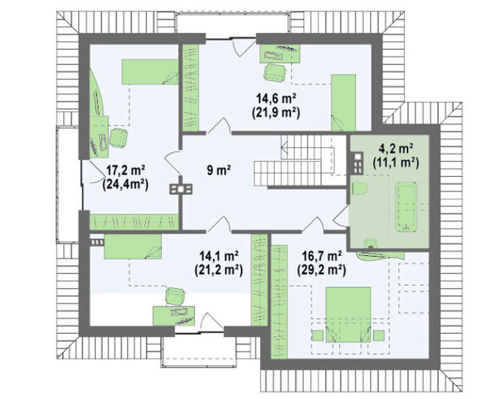 Проект содержит три раздела – АрхитектурныйКонструктивный и Инженерный: водоснабжение, отопление, вентиляция, канализация, электроснабжение (приобретается за дополнительную плату) + Пояснительная записка.