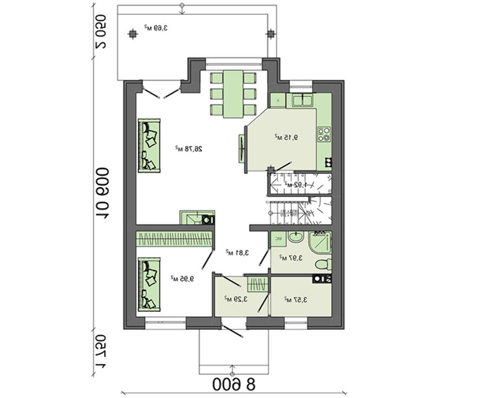 • 4M540 Проект мансардного дома площадью 126 кв.м.