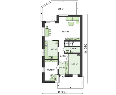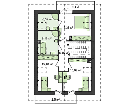 Проект содержит три раздела – АрхитектурныйКонструктивный и Инженерный: водоснабжение, отопление, вентиляция, канализация, электроснабжение (приобретается за дополнительную плату) + Пояснительная записка.