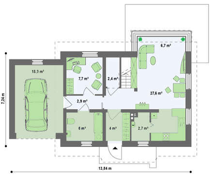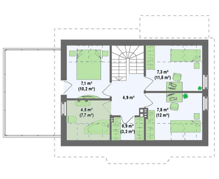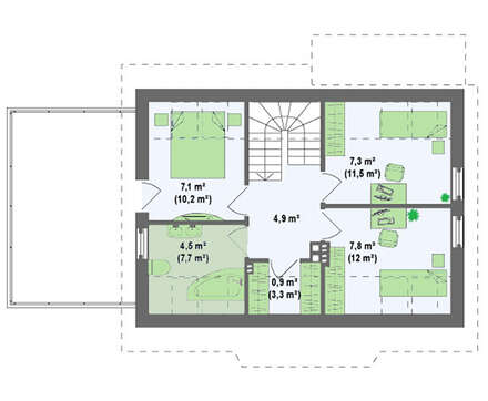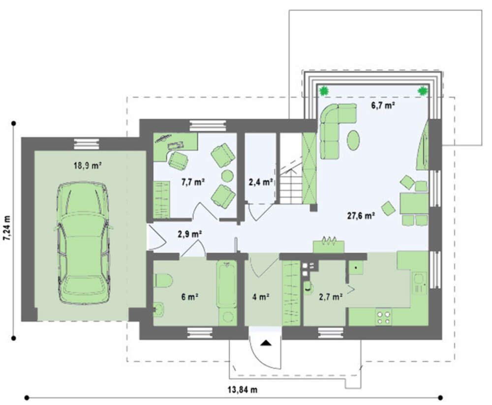 Минимальные размеры участка: длина — 17 м, ширина — 21 м, площадь застройки — 93 м²