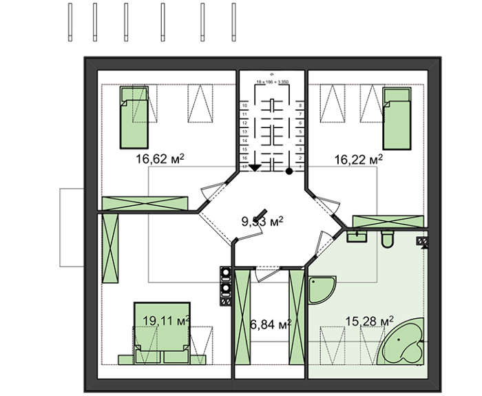 • 4M015 Проект дома с мансардой и дополнительной небольшой спальней