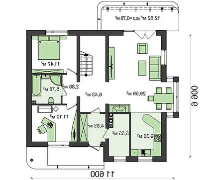 Дом спроектирован с учетом потребностей современной семьи. На первом этаже расположены просторная гостиная, кухня-столовая, дополнительная спальня и санузел. Мансардный этаж включает в себя три спальни и второй санузел, что обеспечивает комфортное проживание для семьи из 4–5 человек. Дополнительная спальня на первом этаже может быть использована как гостевая комната или кабинет, что делает планировку гибкой и адаптируемой под различные потребности.