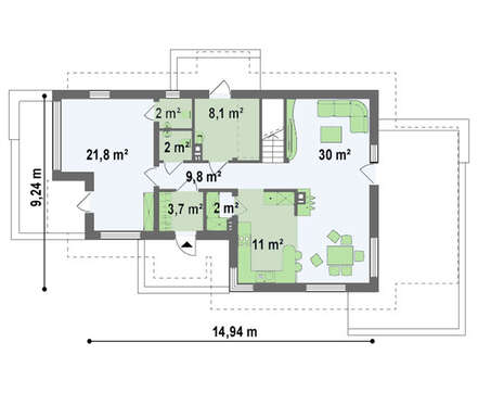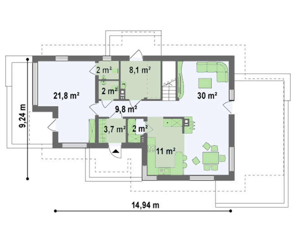 Проект дома с мансардой и дополнительным помещением на первом этаже
