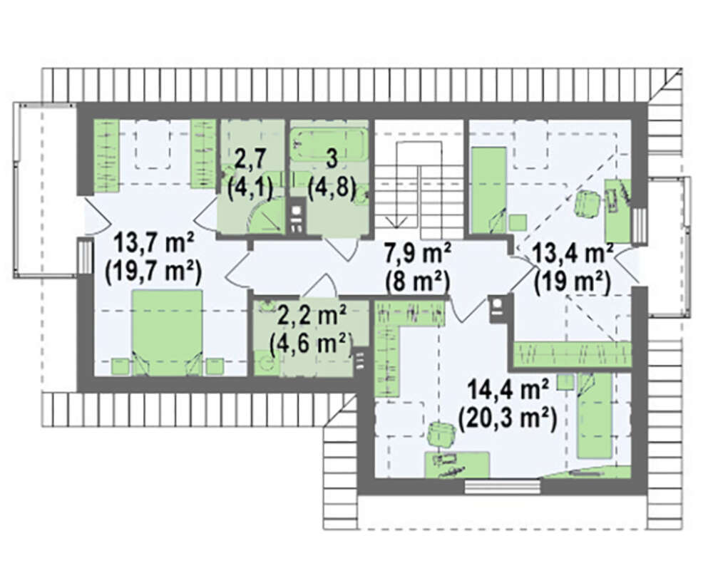 • 4M067 Проект дома с мансардой и дополнительным помещением на первом этаже