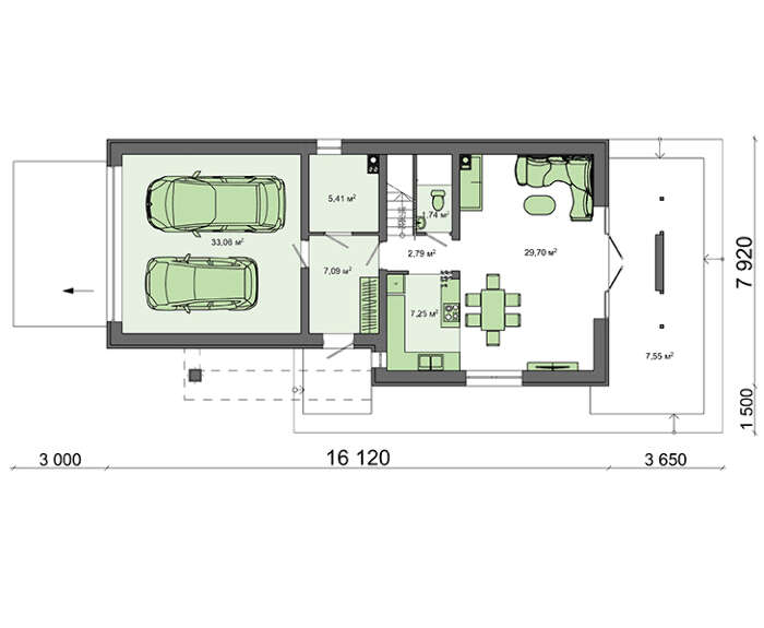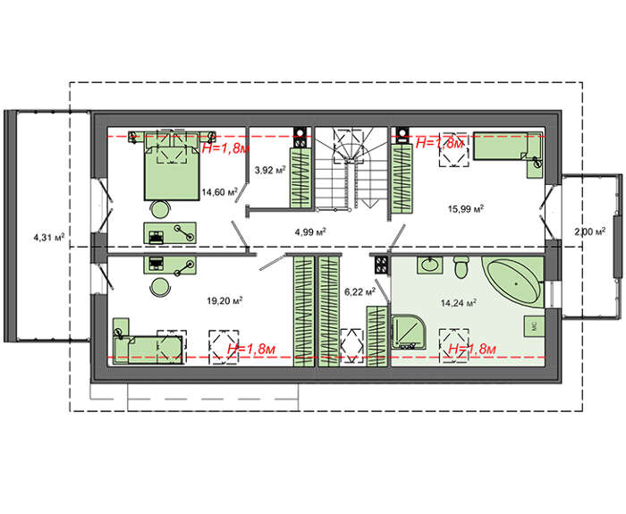 • 4M344 Проект дома с мансардой и гаражом для узкого участка