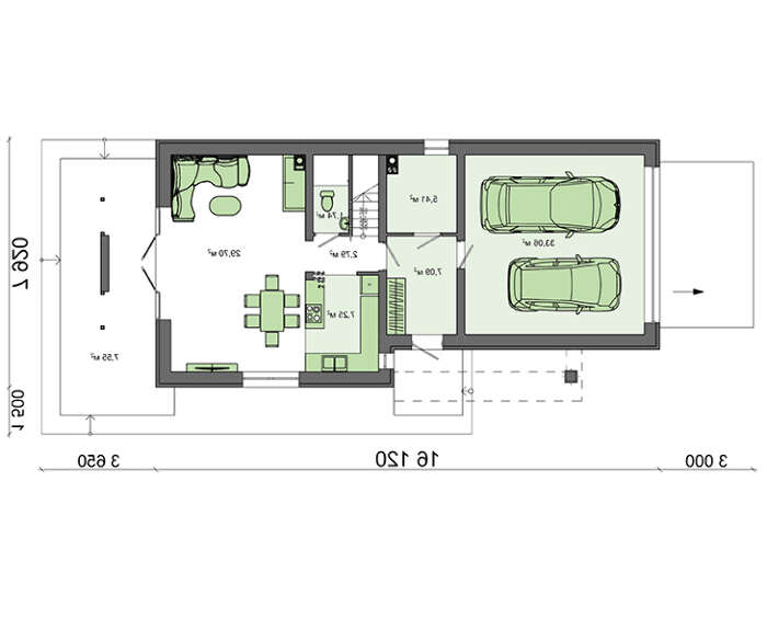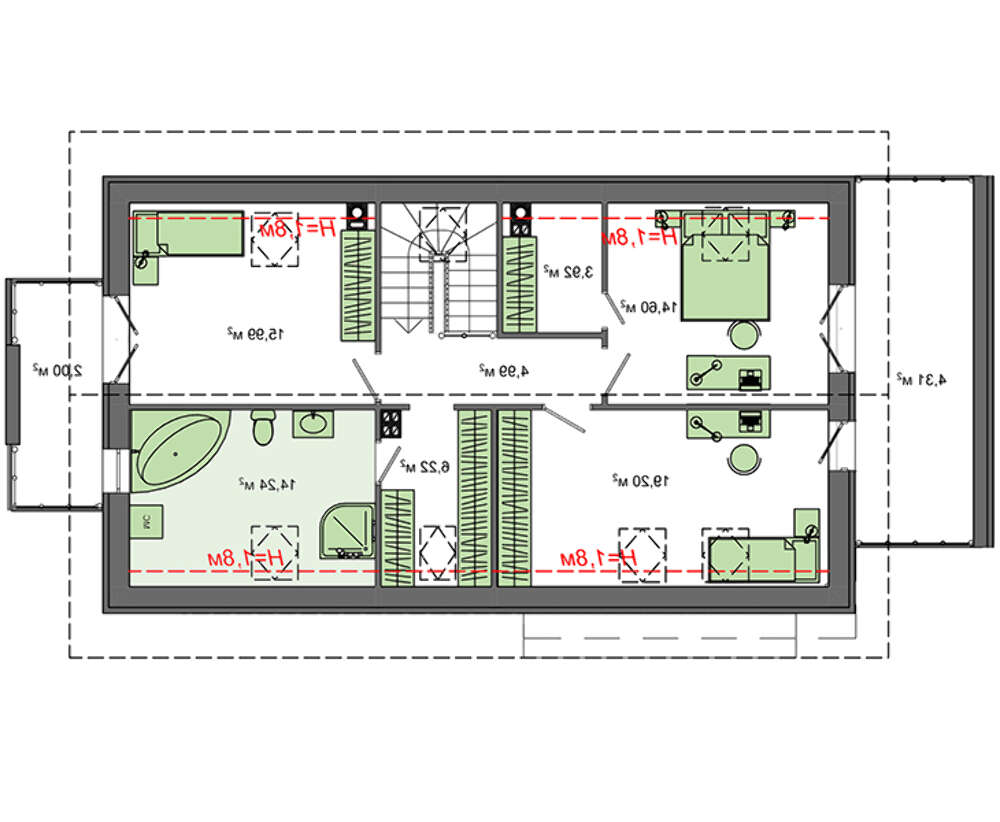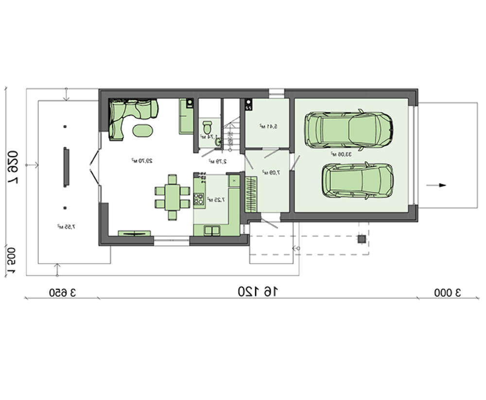 • 4M344 Проект дома с мансардой и гаражом для узкого участка