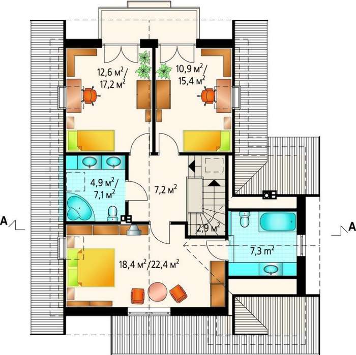 Три большие по размерам помещения второго этажа помогут отдохнуть и расслабиться после трудового дня. Для каждого выделена большая площадь, двое апартаментов имеют балконное пространство, вносящее романтику в обыденное существование.