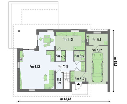• 4M372 Проект дома с мансардой и гаражом с левой стороны