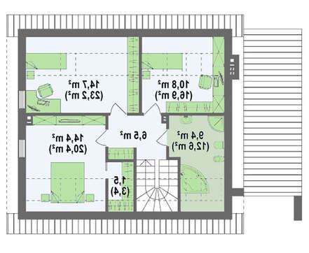 Проект дома с мансардой и гаражом с левой стороны 4M372