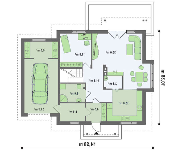 Проектировщики предусмотрели массу «мелочей», которые наполнят комфортом жизнь членов семьи. Это и терраса на заднем дворе, и удобный внутренний переход из гаража в дом, и хозяйственные помещения, в которых удобно хранить всевозможный инвентарь.