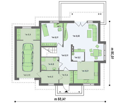 Функциональный и удобный дом с мансардой над гаражом впишется в любую местность. А использование деревянных панелей в отделке фасада, придает жилищу особый уют. Именно таким и должен быть дом для большой семьи. Он просто создан для того, чтобы бережно хранить детский смех и тепло семейных отношений. В таком доме всегда найдется уютный уголок для каждого члена семьи.