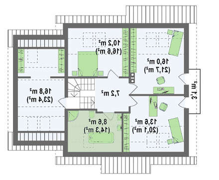 А планировка мансарды позволила не только разместить на этаже три спальни и большую ванную комнату, но и рационально использовать помещение над гаражом. А будет ли здесь комната отдыха или дополнительная спальня – решать только вам.