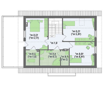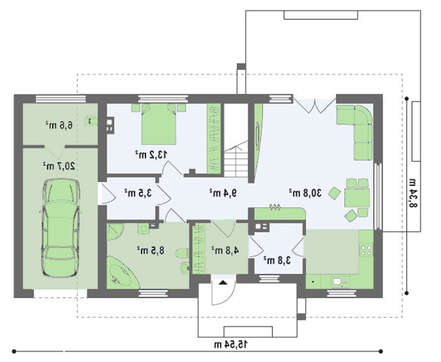 • 4M258G Проект дома с мансардой по типу 4M258 с гаражом на одну машину