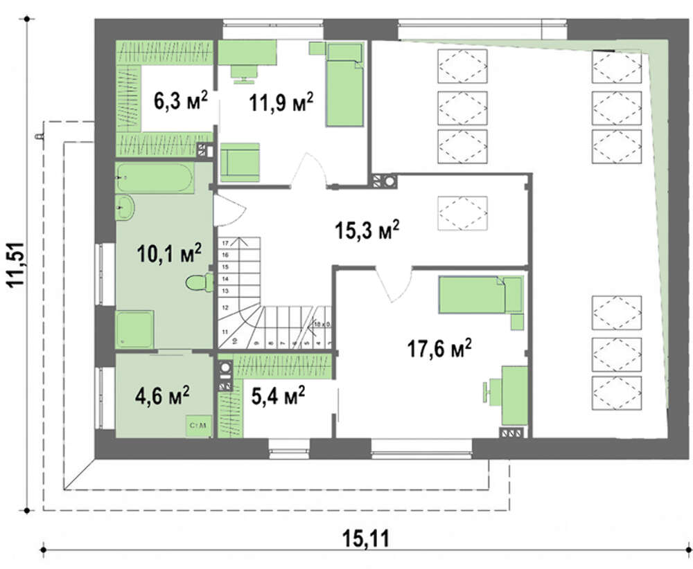 Проект дома с масардой общей площадью 220 кв.м. 4M7101
