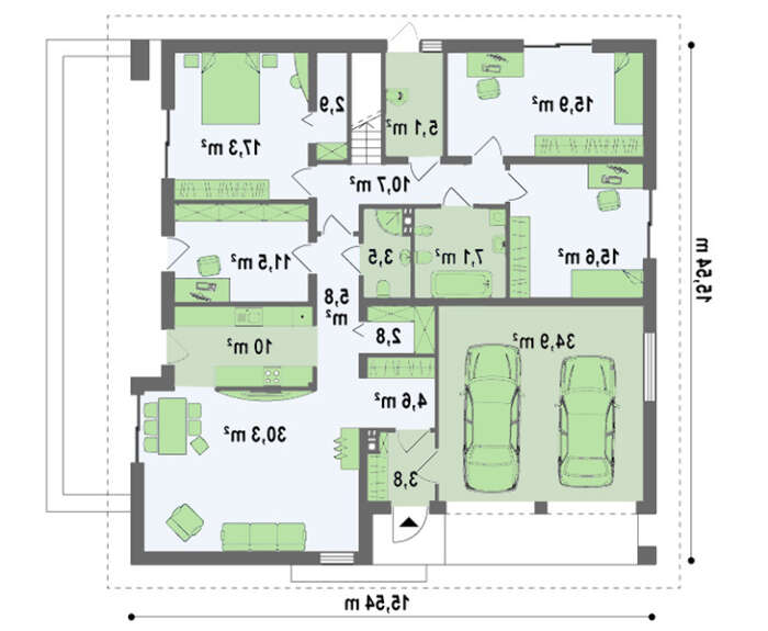 • 4M436 Проект дома с многоскатной крышей и открытой мансардой