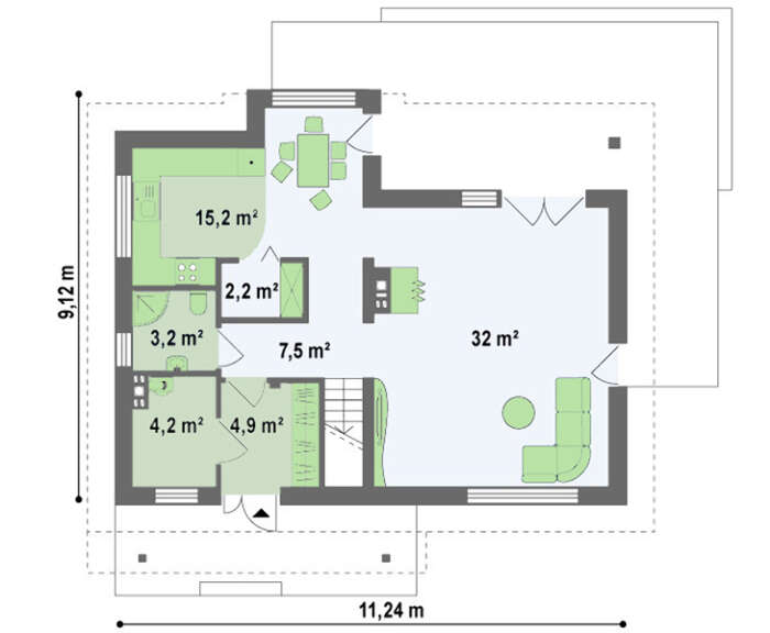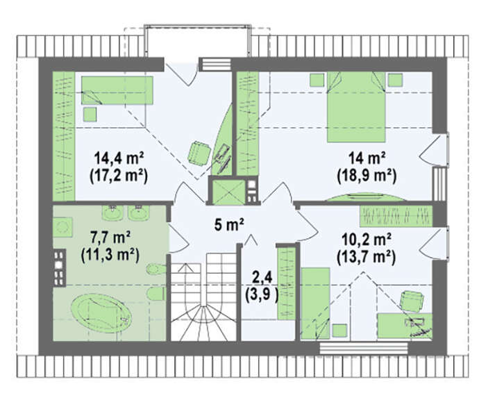Проект содержит три раздела – АрхитектурныйКонструктивный и Инженерный: водоснабжение, отопление, вентиляция, канализация, электроснабжение (приобретается за дополнительную плату) + Пояснительная записка.