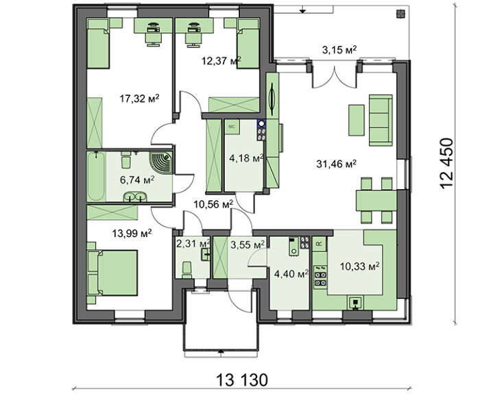 Проект простого дома площадью 120 кв.м.