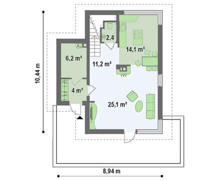 Проект двухэтажного дома для узкого участка представляет собой вариант доступного жилья для молодой семьи. Такой дом экономически выгоден в строительстве и недорогой в обслуживании. И, несмотря на свои компактные размеры, он полностью соответствует всем требованиям к современному жилищу. Объясняется это просто: для создания уютного и функционального дом, проектировщики применили оригинальные архитектурные решения.