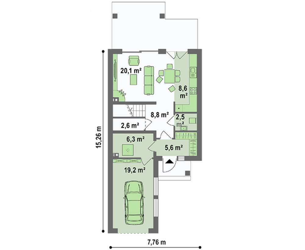 • 4M7045 Проект двухэтажного дома общей площадью 123 кв.м. с гаражом 20 кв.м