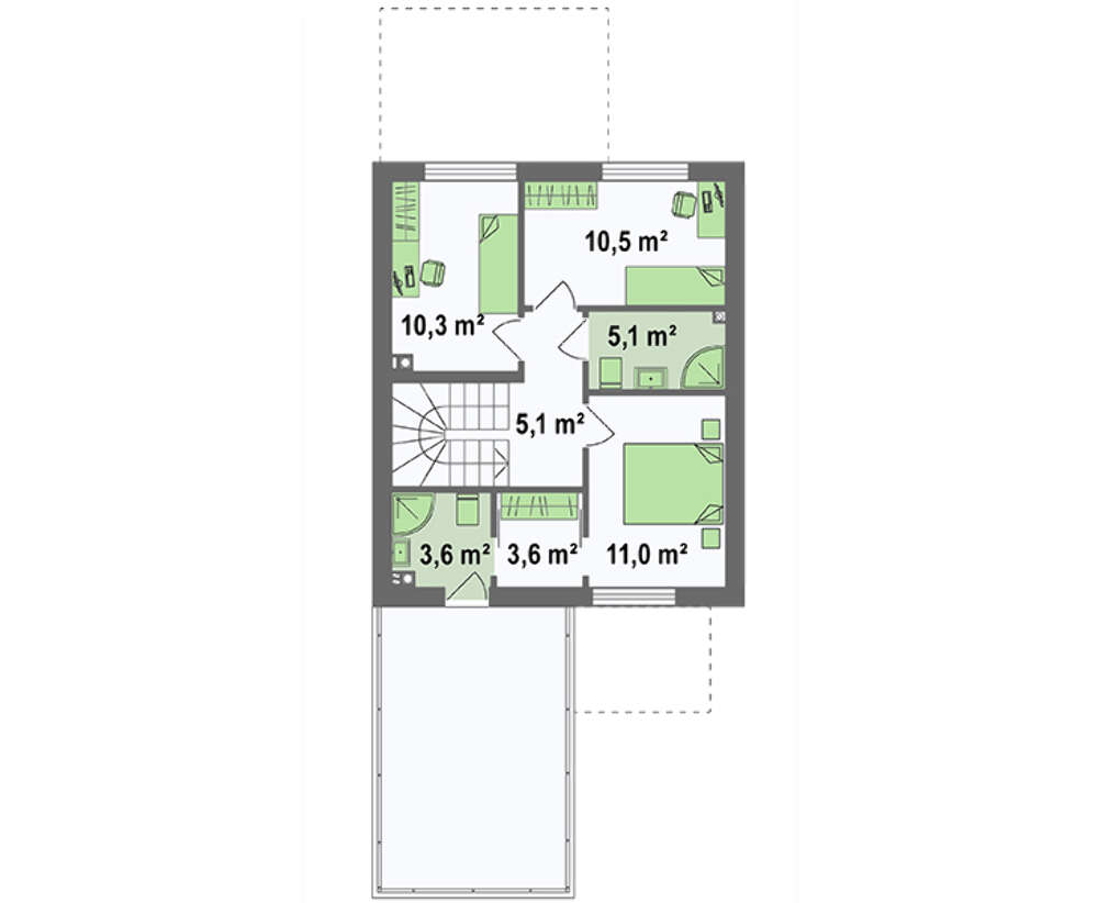 Проект двухэтажного дома общей площадью 123 кв.м. с гаражом 20 кв.м 4M7045