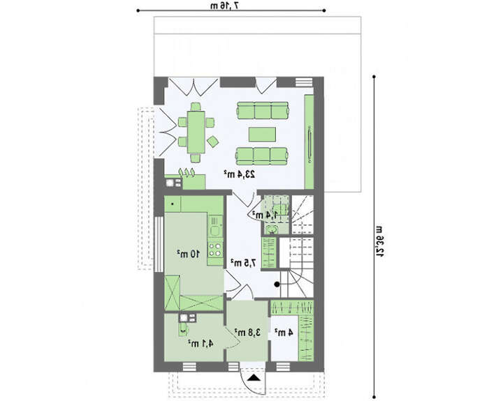 Проект двухэтажного дома с фальцевой кровлей общей площадью 103 кв.м. 4M7044