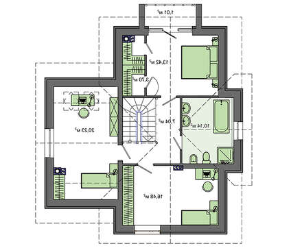 Три вместительные комнаты второго этажа позволят обитателям особняка полноценно отдохнуть, насладиться простором и комфортом. Небольшие личные балкончики дают хозяевам новые преимущества.