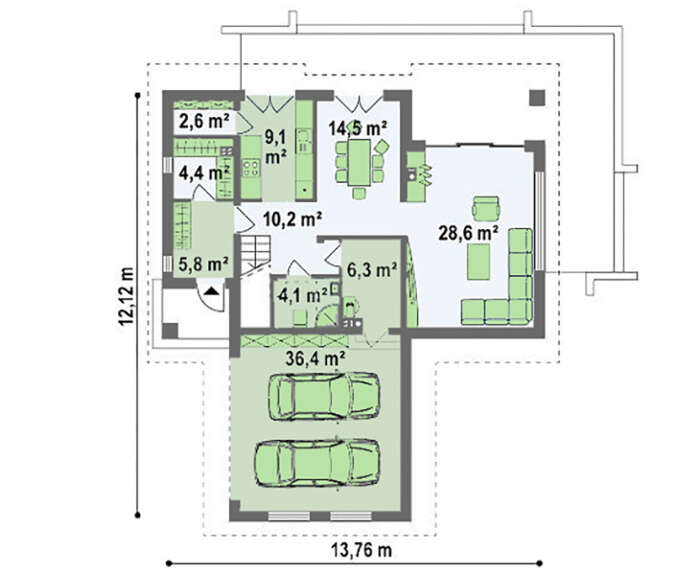 Проект содержит три раздела – АрхитектурныйКонструктивный и Инженерный: водоснабжение, отопление, вентиляция, канализация, электроснабжение (приобретается за дополнительную плату) + Пояснительная записка.