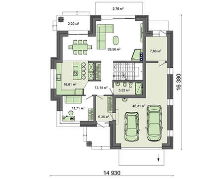 Находящаяся на нижнем уровне комната может быть кабинетом для главы семьи или спальней жильцов старшего поколения. Отдельного внимания заслуживает внушительный гараж в 47 кв. м на два автомобиля. Здесь хватит места не только для обслуживания машин, но и для организации небольшой кладовой и мастерской, для которой можно задействовать и помещение котельной в 8 кв. м.