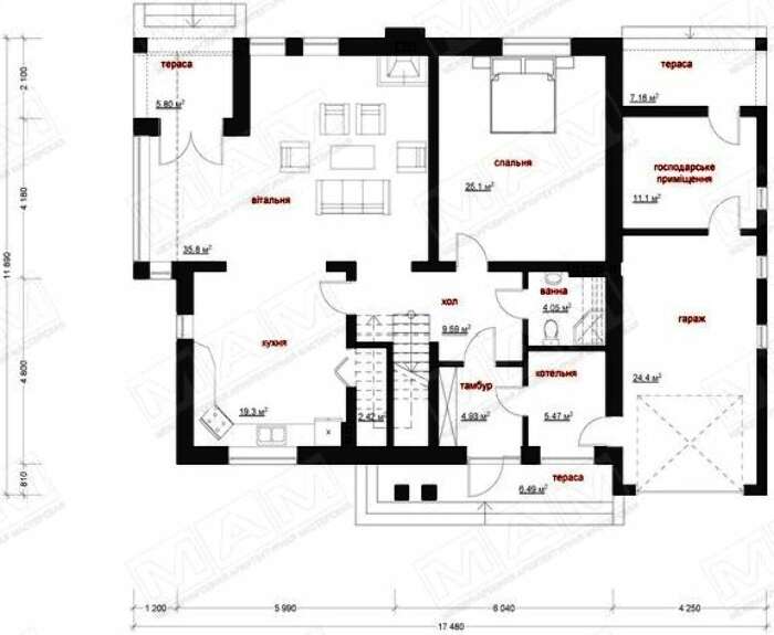 • 4M877 Проект двухэтажного комфортного дома с гаражом