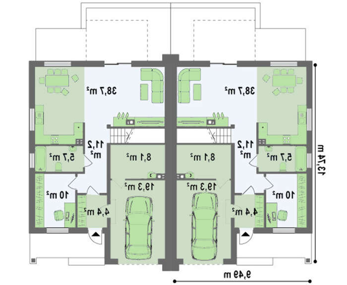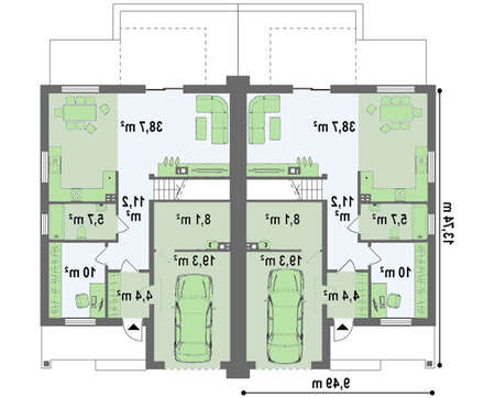 Проект двухэтажного симметричного дома на две семьи 4M548